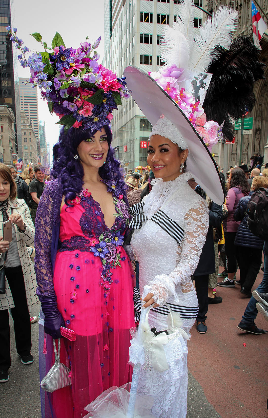 A lovely stroll down 5th Avenue on Easter Sunday; Spring was in the air as the temperature reached the high 60's. The Glam Squad, all decked out in their finest creative ensembles and Easter bonnets, chatted with friends, stopping along the way to pose for photographs. Just about everyone had a camera, as 5th Avenue was bustling with people --shoulder to shoulder--celebrating Easter and the renewal of Springtime. #TheGlamSquad,#elegantbunnies,#flowers,#Easterbonnets April 22nd, 2019